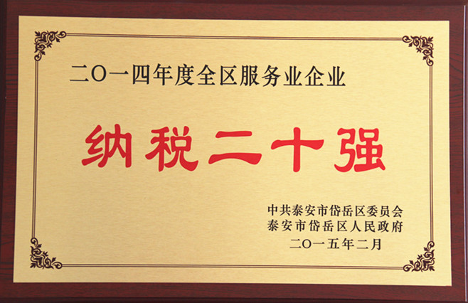 • 2014年度全區(qū)服務(wù)業(yè)企業(yè)納稅二十強(qiáng)