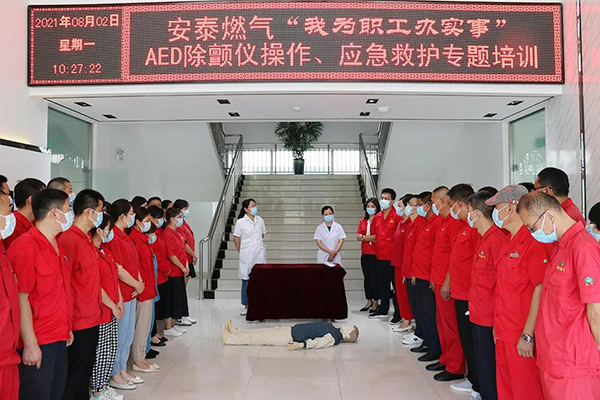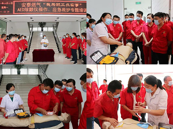 8月2日上午,安泰燃氣公司組織開展AED體外除顫儀操作、應急救護專題培訓,公司不當班員工50余人參加了此次培訓。