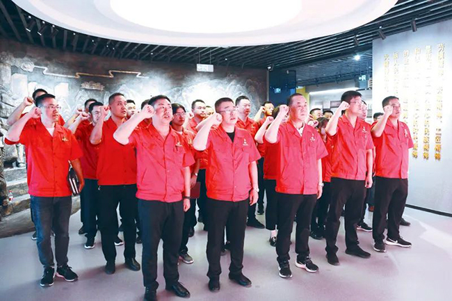 活動(dòng)人員結(jié)合文字、圖片、視頻、實(shí)物等認(rèn)真聆聽了各行各業(yè)涌現(xiàn)出的先進(jìn)模范典型事跡,學(xué)習(xí)重溫了黨中央關(guān)于大力弘揚(yáng)勞模精神、勞動(dòng)精神、工匠精神的重要論述。干部職工深受鼓舞和教育,對(duì)三種精神有了更直觀的理解和感悟。參觀結(jié)束后,支部全體黨員面對(duì)黨旗,重溫入黨誓詞。