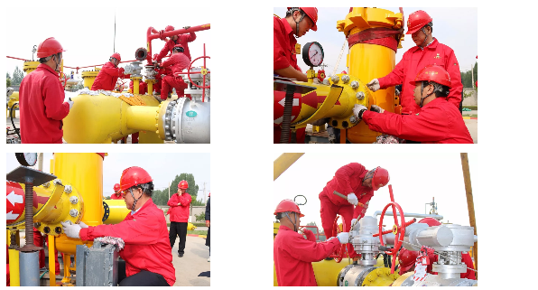 由于燃?xì)獾母呶L厥庑?,站區(qū)安全工作成為企業(yè)運行的首要任務(wù),細(xì)節(jié)把控顯得尤為重要。進(jìn)入工藝區(qū)全程必須防靜電,連普通手機都絕對不能使用。而本次更換閥門及過濾器屬于特殊的作業(yè)環(huán)境,臨近3米范圍內(nèi)就是正在正常供氣運行的中石化管道工藝區(qū)。大型燃?xì)忾y門吊裝、更換安裝作業(yè)必須有嚴(yán)格的方案及相應(yīng)的安全措施,其中還涉及焊接作業(yè),工程難度和安全風(fēng)險度可想而知。5月初的天氣微涼,只穿著普通單衣工裝的操作人員因為高度緊張的精神狀態(tài)和需要萬般嚴(yán)謹(jǐn)?shù)牟僮鞑襟E,被汗水一次次濕透了臉頰和衣背,“安泰紅”的工作服上,太陽一曬就冒出層層汗堿。
